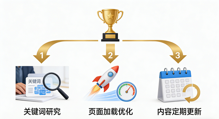 正确做法: 站在用户角度思考:他们会搜什么具体词来找你的服务?把这些词自然地融入到页面标题、内容或分类中。