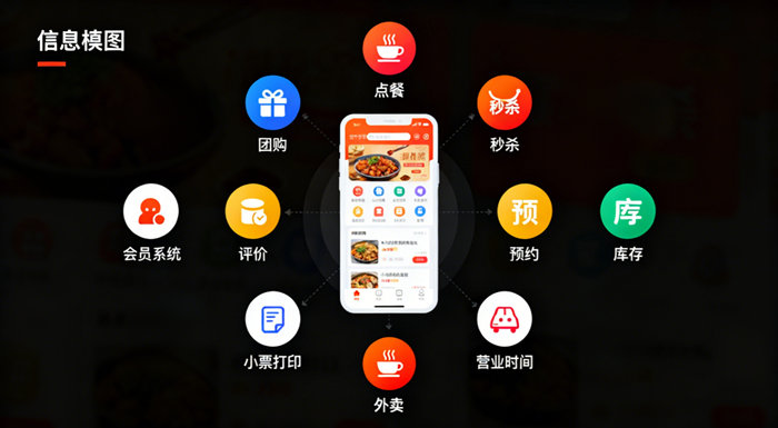1. 手机点餐,又快又准 顾客扫码进入小程序,就能直接浏览带图片的菜单,看中什么点什么,自助下单。这样既减少了顾客排队等待的时间,也避免了服务员手写记录出错,大大提升了点餐的效率和准确性。