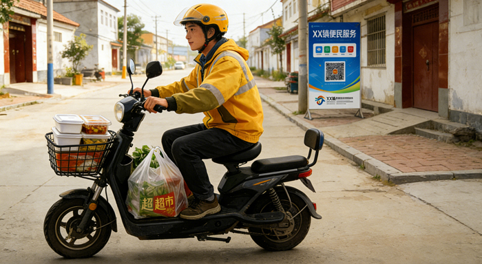 当下,一二线城市本地生活市场早已饱和,而县城、乡镇等下沉市场,正成为新的蓝海——镇上的餐馆想做外卖却没渠道,超市的米面油想送货上门却缺配送,居民想代买药品、代缴水电费却找不到人,这些“小需求”背后,藏着巨大的生意机会。